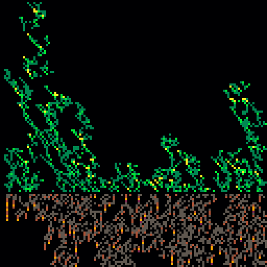 discover the power to grow upwards and then grow in many directions at once. grow a brand new batch of weeds in the dirt. find random crystalline shards.